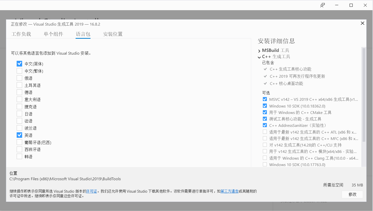 安裝 Microsoft C++ 生成工具